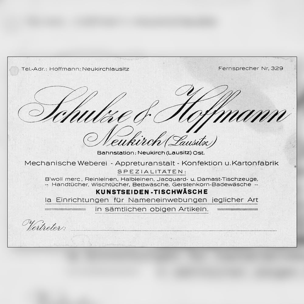 Sucht man „Leinen - Made in Germany“ wird man in der Oberlausitz fündig. Die Geschichte der Leinenweberei Hoffmann reicht bis ins Jahr 1905 zurück, als der Fabrikant Karl-Gustav Schulze und der Kaufmann Martin Hoffmann das Unternehmen gründeten. Von Anfang an spezialisiert auf Jacquardstoffe und Stickereien, wuchs das Unternehmen rasch an und übernahm noch im selben Jahr den bis heute erhaltenen Firmensitz in Neukirch/Lausitz.